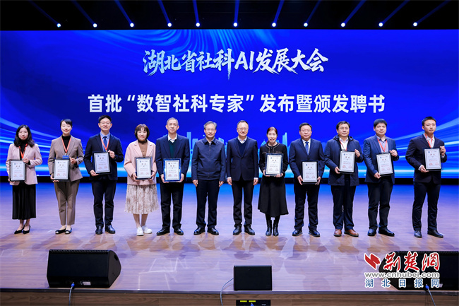 与会领导为湖北首批“数智社科专家”颁发聘书