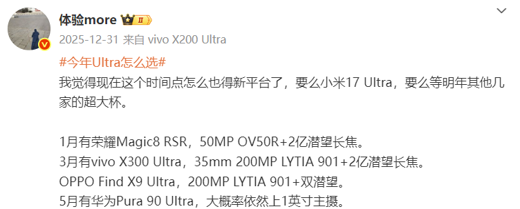 vivo X300 Ultra是人文专注派,以35mm焦段和双2亿系统,深入挖掘特定创作领域的极致体验与情感表达。