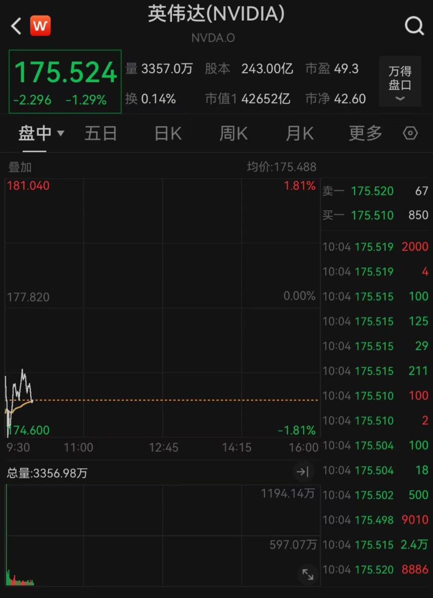 另一家备受瞩目的科技公司英伟达则于开盘后一度跌超1.8%。